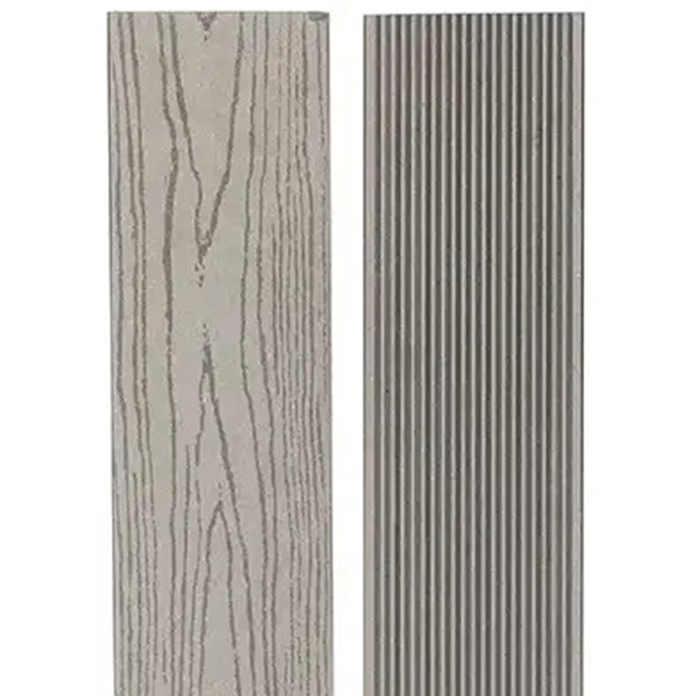 Террасная доска из древесно-полимерного композита с добавлением минералов (МПК) 140 мм серого цвета состоит из натуральной древесной муки, минералов, полимеров, также применяются красители и прочие добавки, в результате смешивания которых образуется износостойкий материал, обладающий огнеупорными и влагозащитными свойствами. Благодаря добавлению минералов доска прекрасно выдерживает воздействие атмосферных осадков по сравнению с классическим составом ДПК.